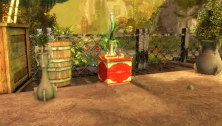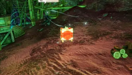 - Zerschlagen (Einen Ast aufheben, oder den Raptor nutzen, um die Holzkisten zu zertrümmern)
