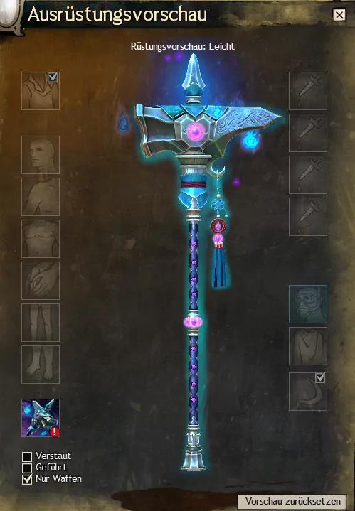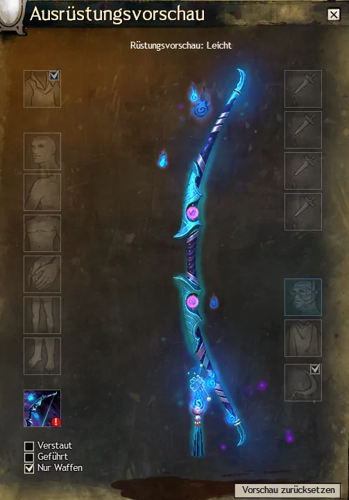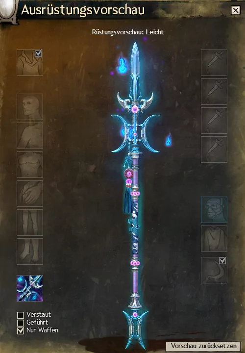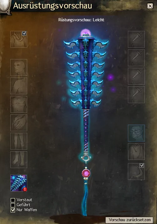 Die Besonderheit dieses Waffensets sind die kleinen blauen Flammen, die um die Waffen schweben.