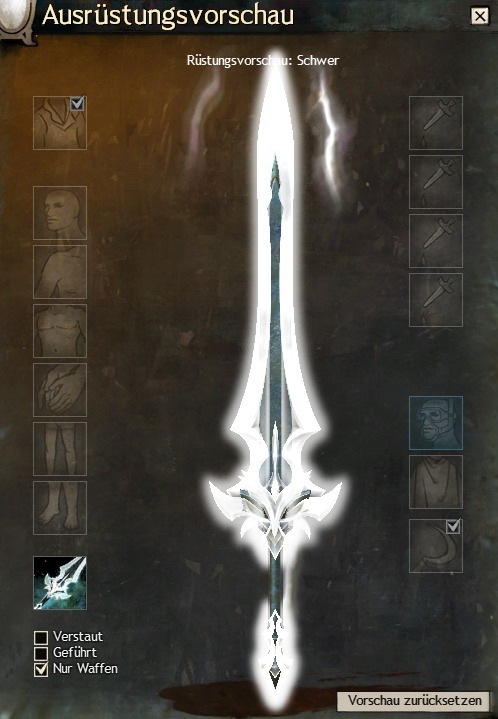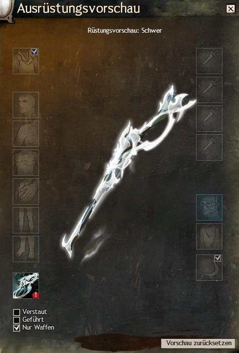 Die neuen Lichtgetragenen-Waffen kamen mit dem letzten Update von Janthir Wilds ins Spiel. Sie sind eine Nachfolgeversion der Schlummernden Lichtgetragenen-Waffen. Ihr schaltet sie durch Herstellung an der entsprechenden Waffenstation oder den Handelsposten frei.