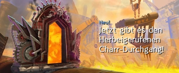 Der Charr-Durchgang ist ein neuer Skin für das Portal, welches uns in unsere Heimstätte bringt. Bei diesem Durchgang wurde das beste Metall verarbeitet und die Handwerkskunst der Charr ist deutlich zu erkennen. Für 600 Edelsteine könnt ihr euch einen neuen Durchgang im Edelsteinshop kaufen.