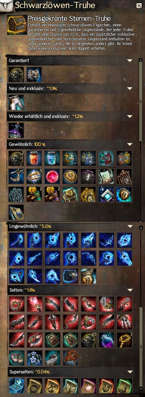 Mit dem heutigen Patch kam auch eine neue Schwarzlöwentruhe ins Spiel, die Preisgekrönte Sternen-Truhe.