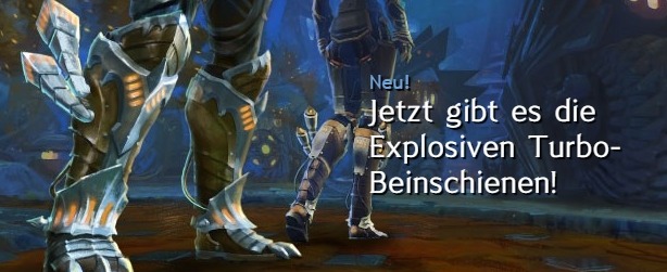 Die Explosive Turbo-Beinschienen sehen so aus, als ob sie aus der Werkstatt von Scarlett Dornstrauch kommen. Diese Beinschienen sind aus robusten Metall geschmiedet und haben Dampfabzüge an den Seiten verbaut. Um diese Beinschienen kaufen zu können braucht ihr 400 Edelsteine.