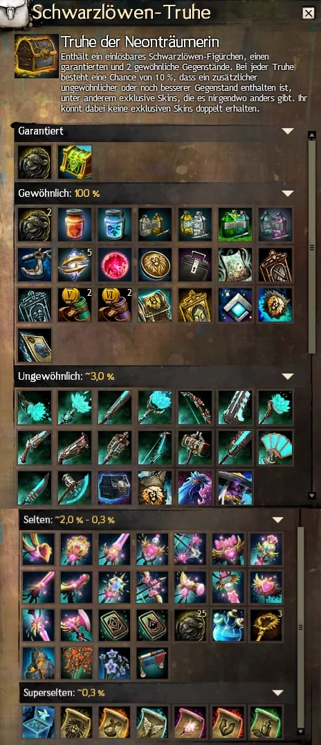 Mit dem heutigen Patch kam auch eine neue Schwarzlöwentruhe ins Spiel, die Truhe des Neonträumers.