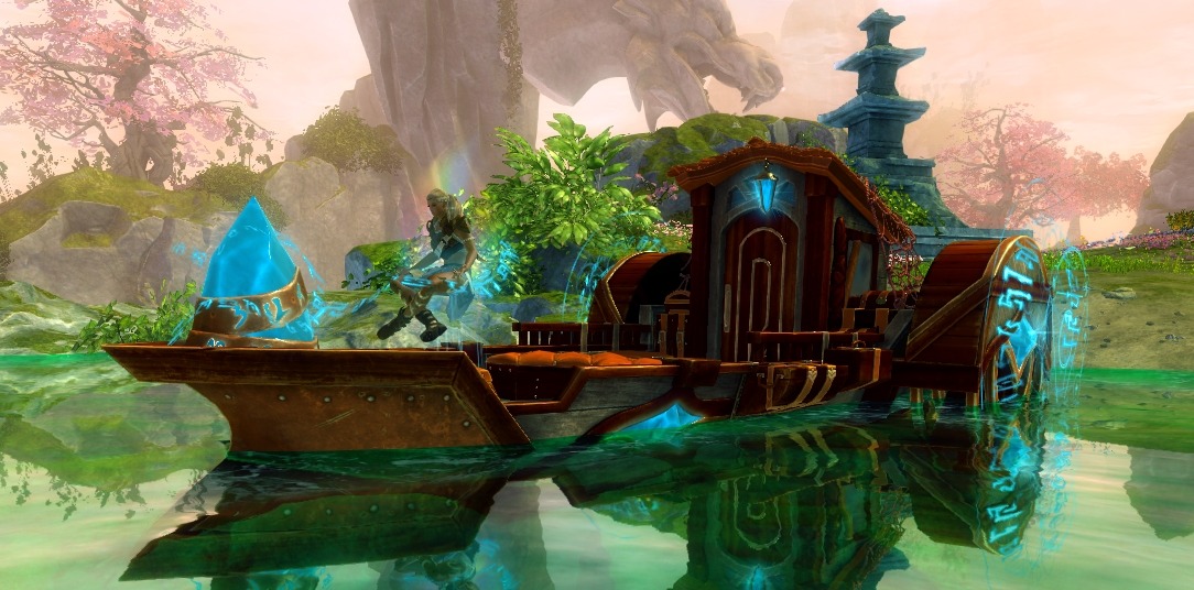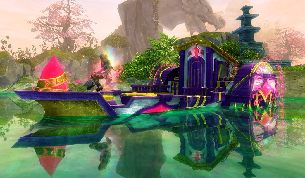 Der Skin für Zauberbann-Skiff wird durch Arkane Kristalle und ihre Magie angetrieben. Diese besondere Art der Magie lässt euch auf dem Platz des Kapitäns schweben, während ihr euer Skiff über die raue See manövriert. Das Aussehen dieses Skiffs hat viele Gemeinsamkeiten mit dem Arkanen Zauberweber-Hut den es als Vorbestellerboni von Secrets of the Obscure gibt. Solltet ihr eure Vorfreude auf die neue Erweiterung mit diesem besonderen Skin zeigen wollen, benötigt ihr für den Kauf 1600 Edelsteine.