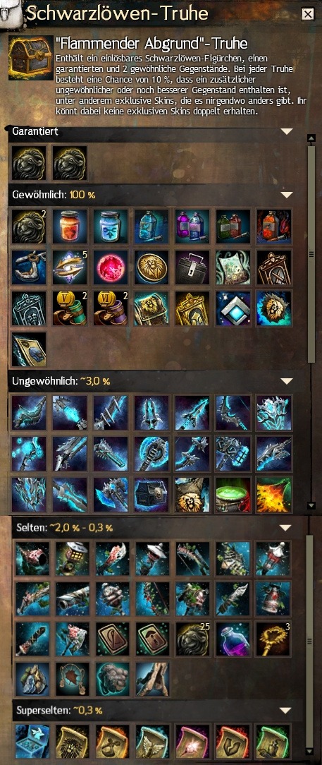 Mit dem heutigen Patch kam auch eine neue Schwarzlöwentruhe ins Spiel, die „Flammender Abgrund“-Truhe.