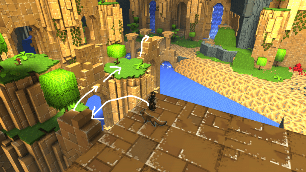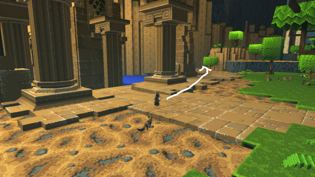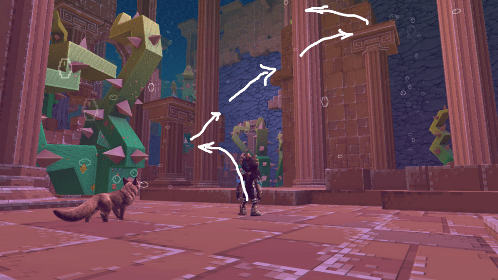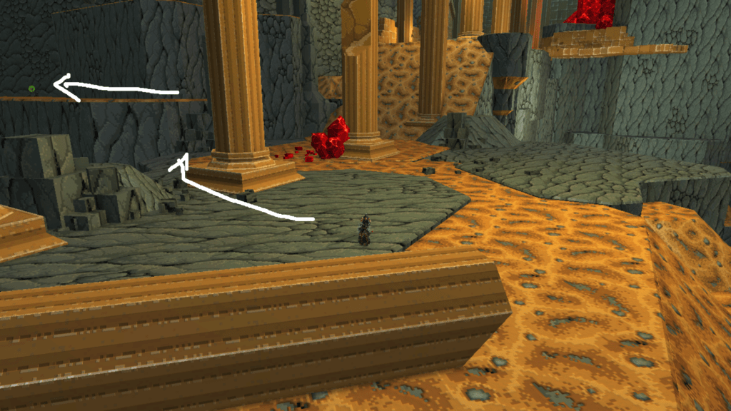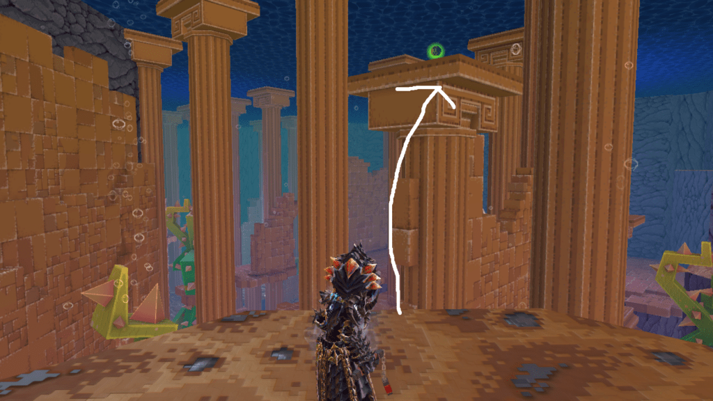 Nicht unweit der ersten Sphäre versteckt sich die zweite auf einer Säule, die ihr am besten über die Wand erreicht.