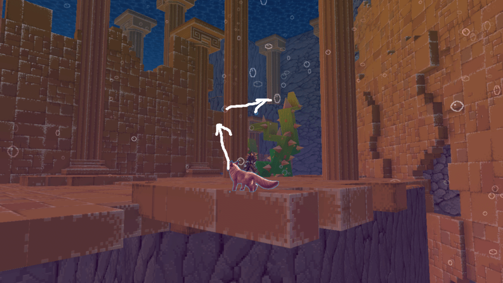 Nachdem ihr das erste Mal Unterwasser seit befindet sich die erste Blase direkt vor euch auf einer Plattform